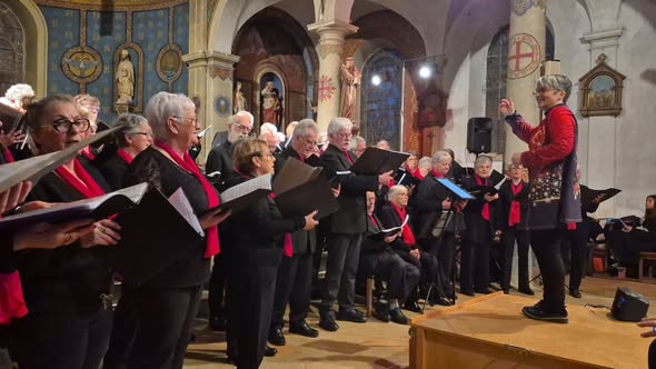 En 2ème partie, les 54 choristes, sous la direction de la nouvelle chef de chœur Marie-Thérèse Brebion, ont offert une prestation dynamique et de très grande qualité.