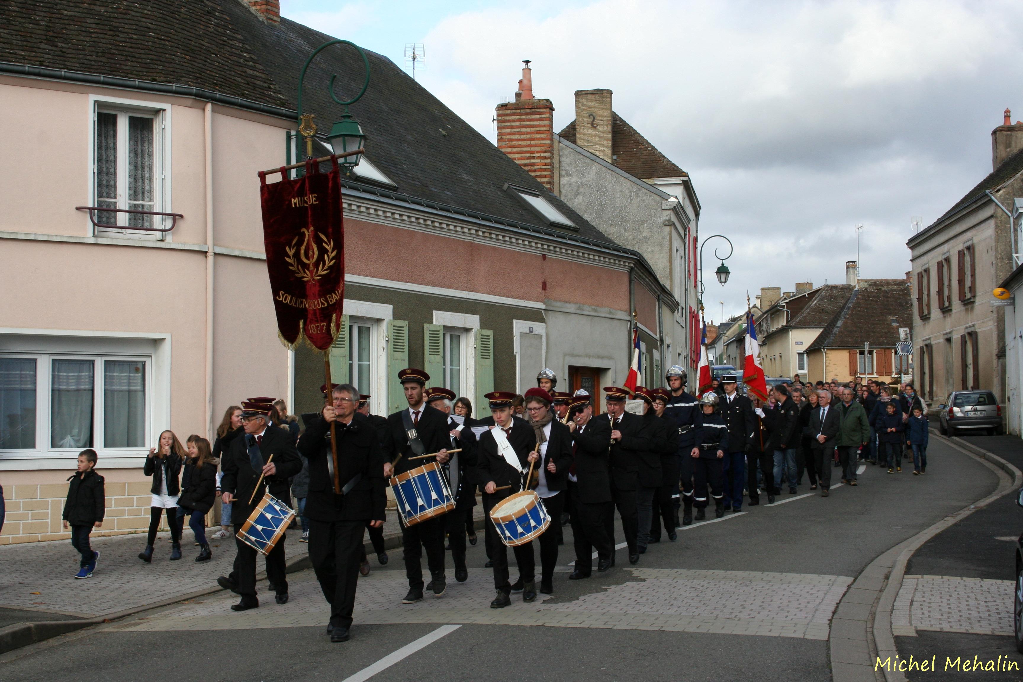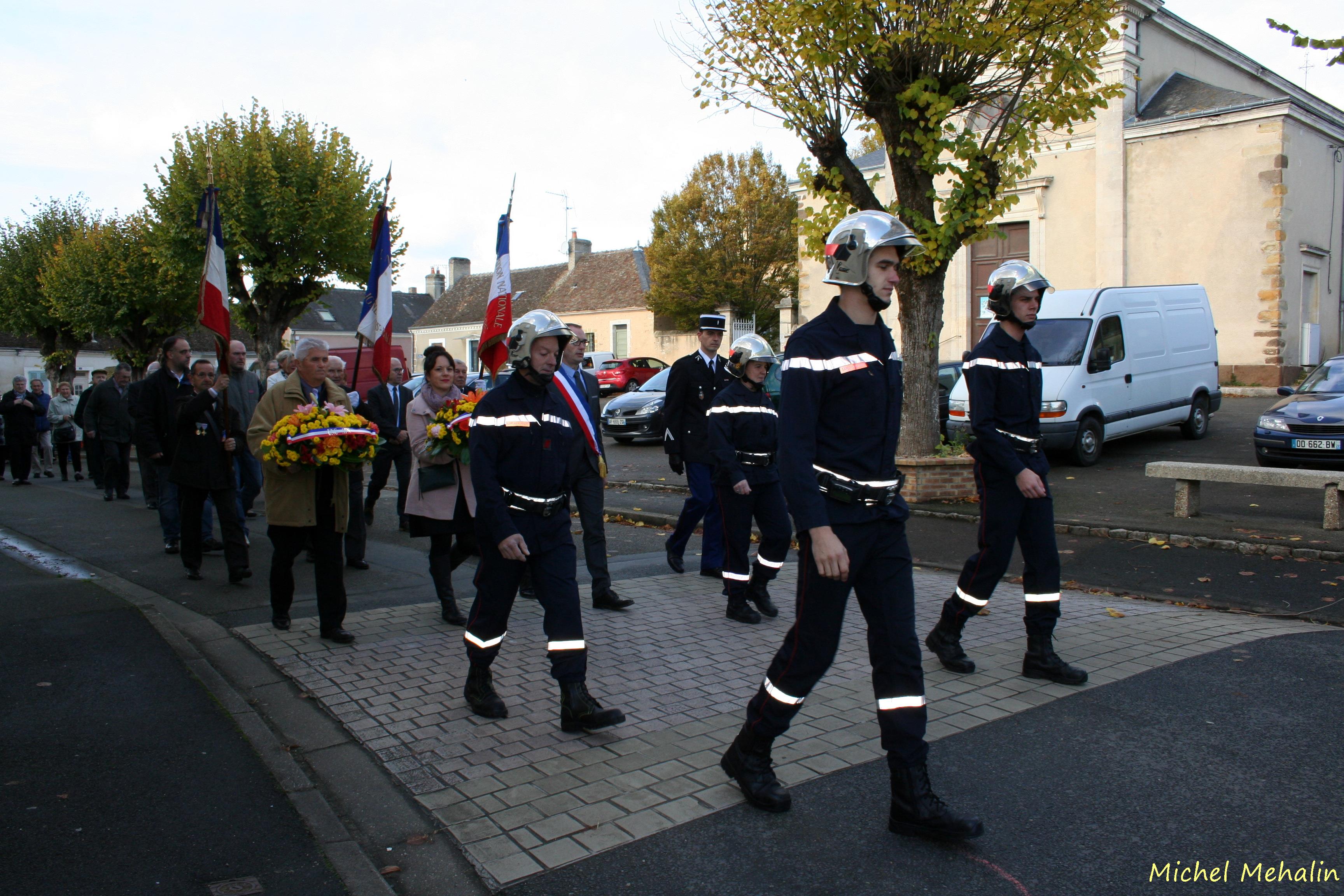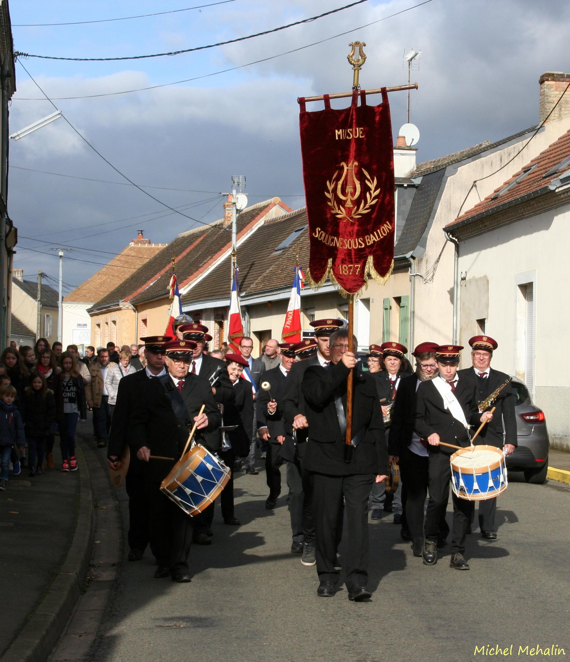 Emmené par l’harmonie municipale, le défilé s’est arrêté au Monument aux Morts. De nombreux habitants étaient présent, et de nombreux enfants également. 4 élèves de l’école, accompagnés de la directrice, ont lu 4 lettres de soldats écrites depuis le front. Puis ce fût l’appel des soldats de la commune morts au combat. Après la Marseillaise et le Chant des Partisans, David Chollet, maire, a mis à l’honneur Monsieur Léon Bouttier décoré le matin même en Préfecture de la Médaille Militaire.